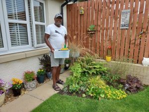 2nd place- Raymond Burgess – A stunning garden full of energy and purpose with great use of the space to not only grow flowers but a whole range of vegetables and fruits as well- rhubarb, courgette and strawberries to name a few. Ray commented ‘I have shown that you do not need a large garden area to create something amazing. I am disabled and use a wheelchair to get around and enjoy what I grow’. Huge thanks to Burnetts Solicitors for donating a £50 voucher!